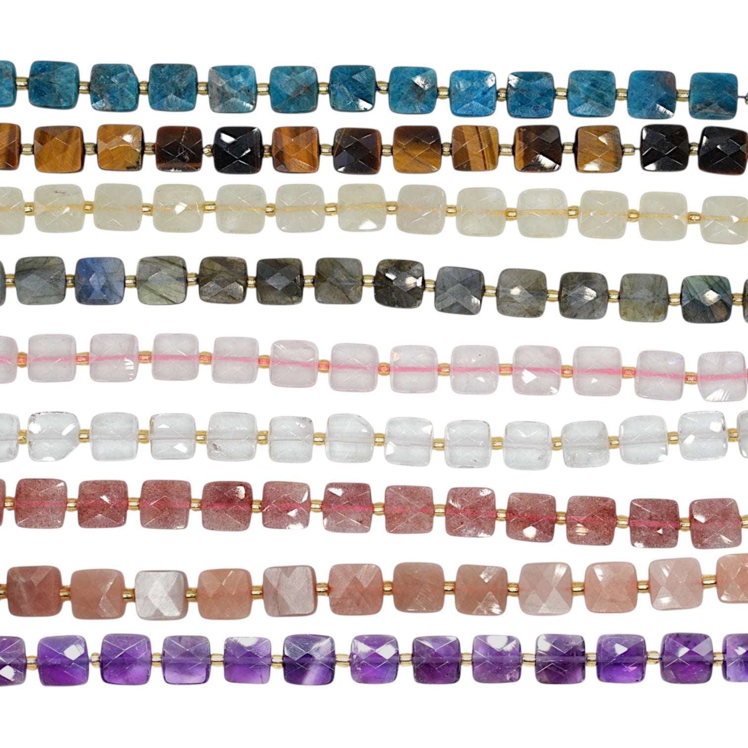 Fil de perles carrés facettés 10 mm (9 pierres disponible)