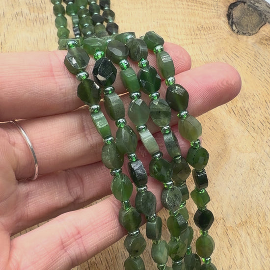 Fil de Jade nephrite ovale plat facetté 7x8 mm