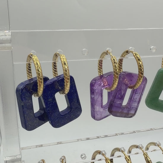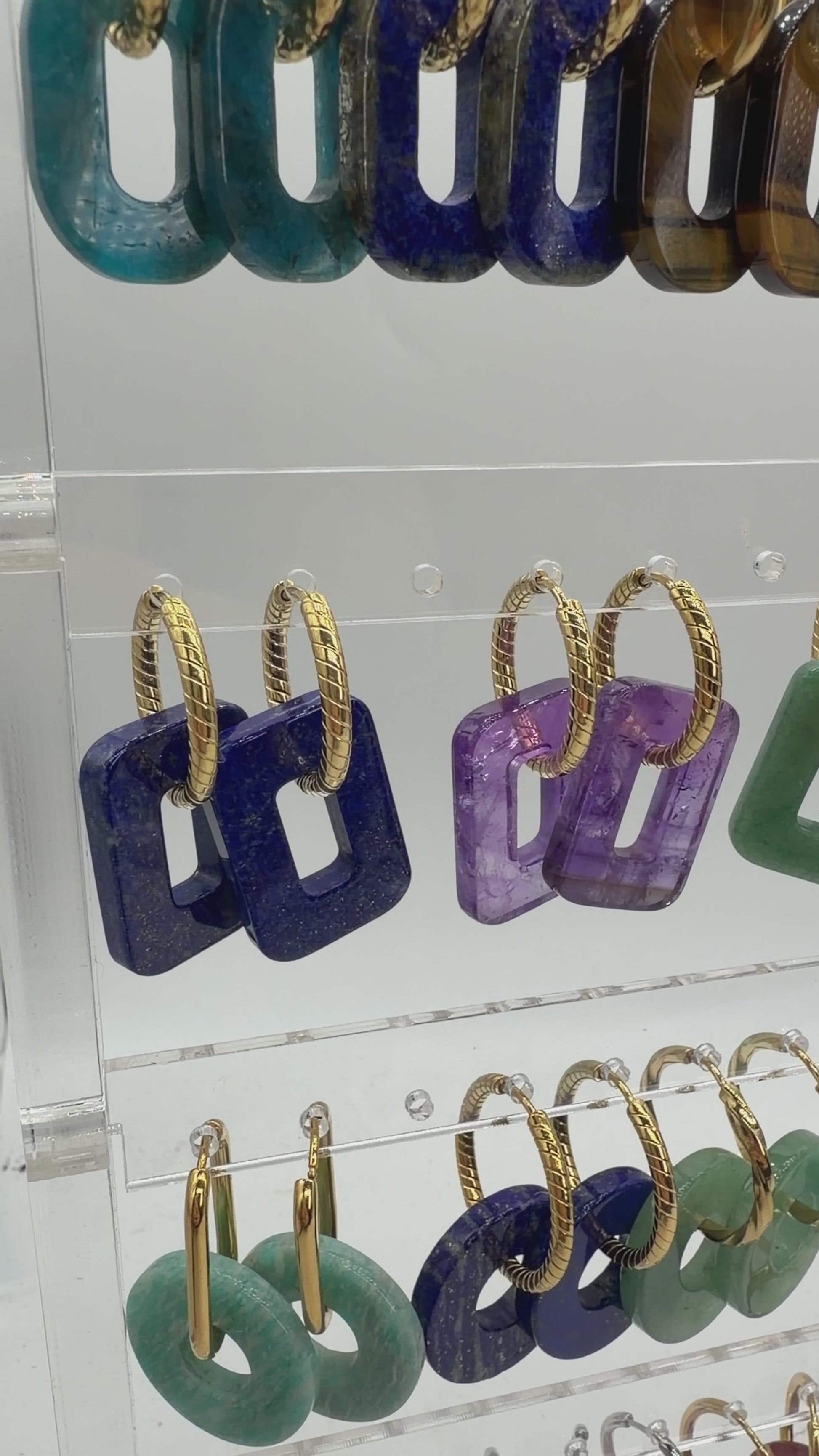 Ces deux petits charms sont entièrement taillés dans de véritables pierres naturelles. Ils sont conçus pour être glissés sur des créoles afin de personnaliser vos boucles d’oreilles selon vos envies.