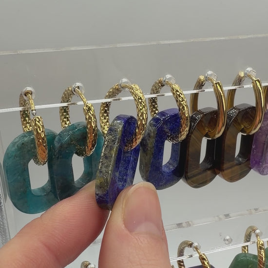 Ces deux petits charms sont entièrement taillés dans de véritables pierres naturelles. Ils sont conçus pour être glissés sur des créoles afin de personnaliser vos boucles d’oreilles selon vos envies.