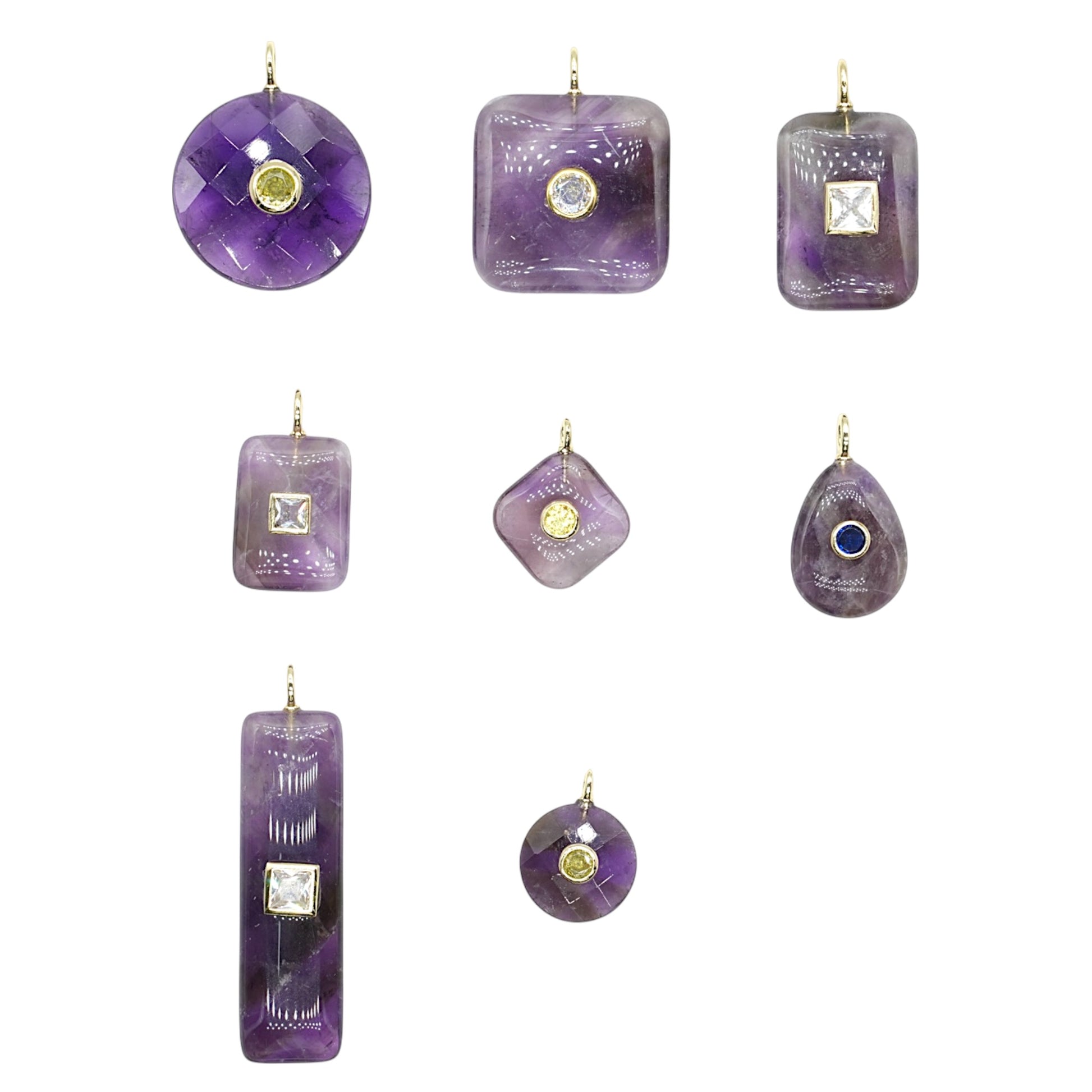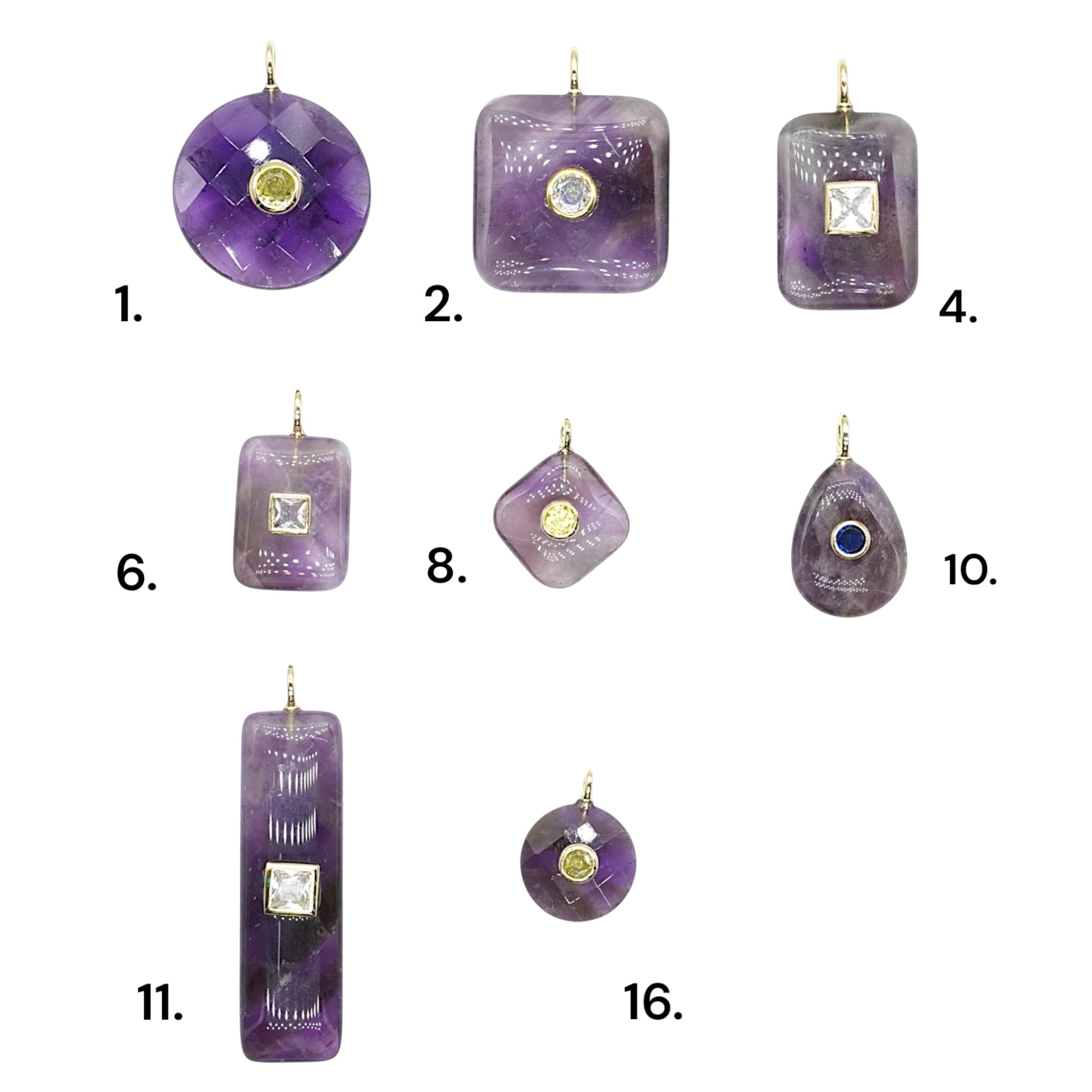 Collier Pendentif en améthyste avec pierre Zircon couleur aléatoire (8 formes disponible)