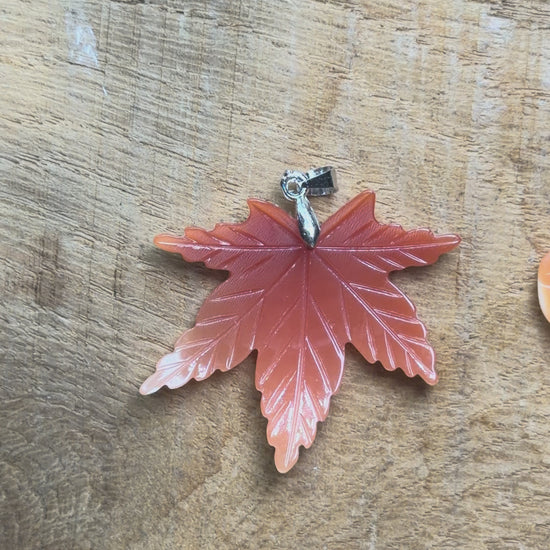 Pendentif feuille sculptée en nacre de Tumau orange