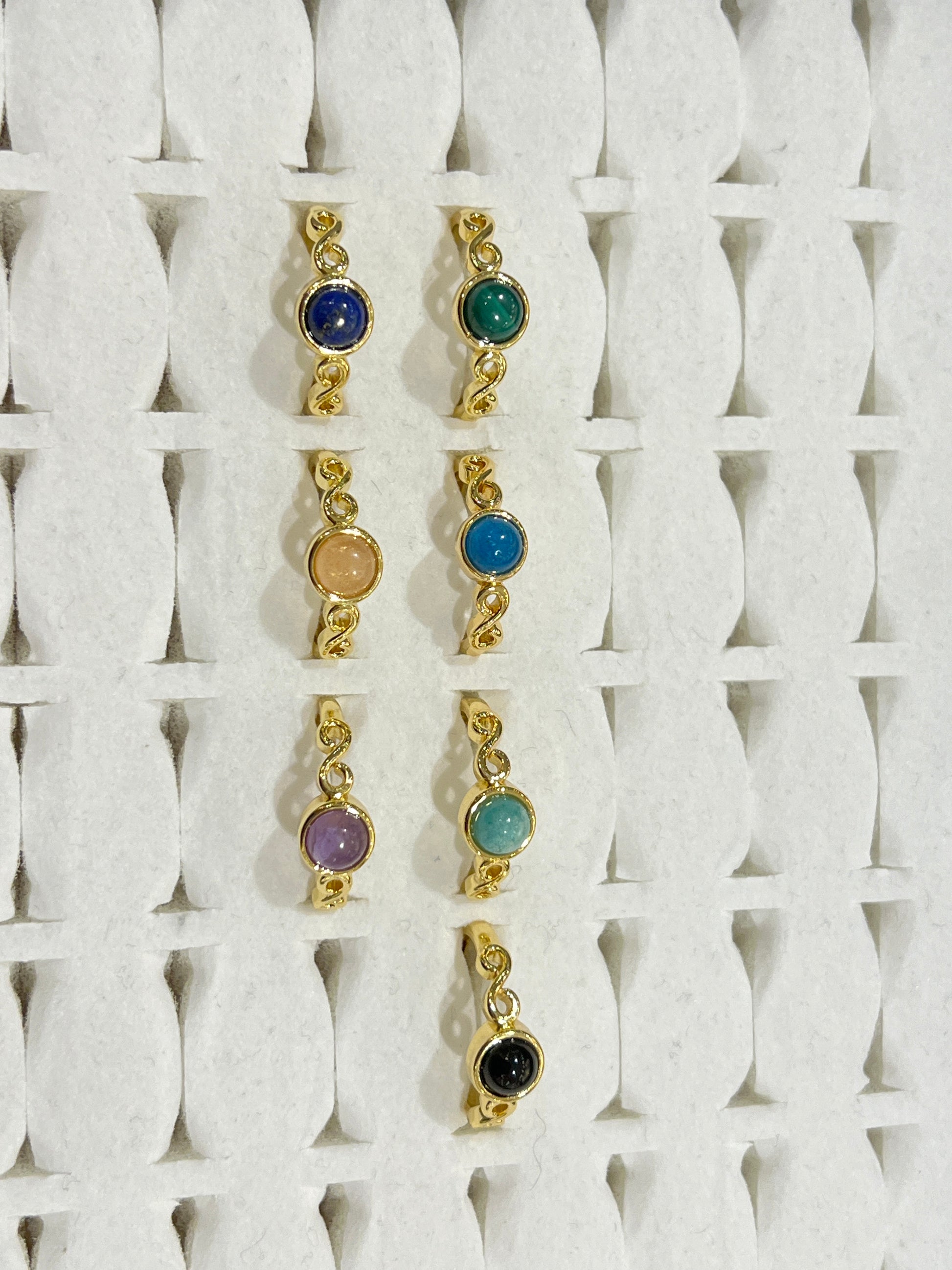 Bague en laiton rhodié doré & pierre naturelle (Réglable) #7