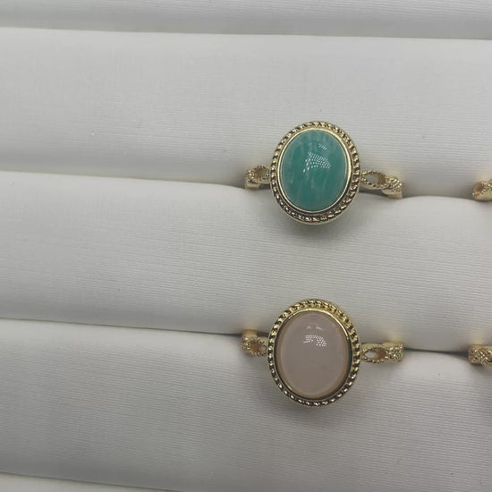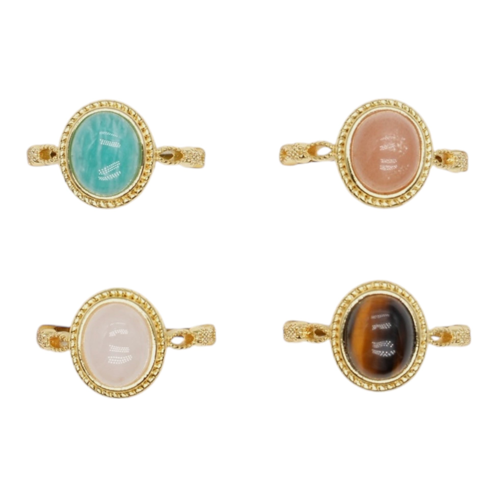 Bague en laiton rhodié doré & pierre naturelle (Réglable) #9