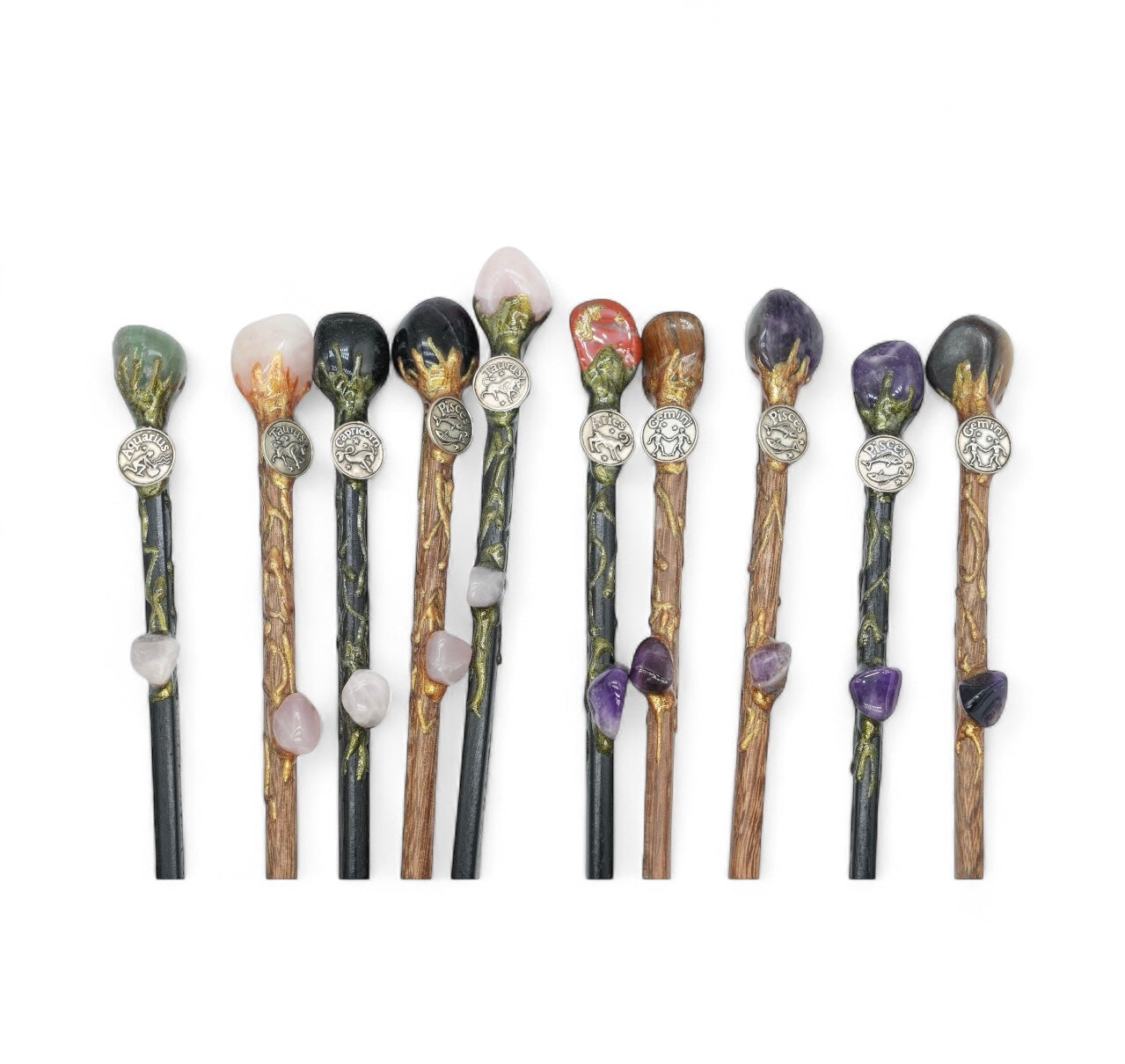 Baguette magique en pierre artisanale & signe astro pour rituel & méditation 35 cm à l’unité aléatoire