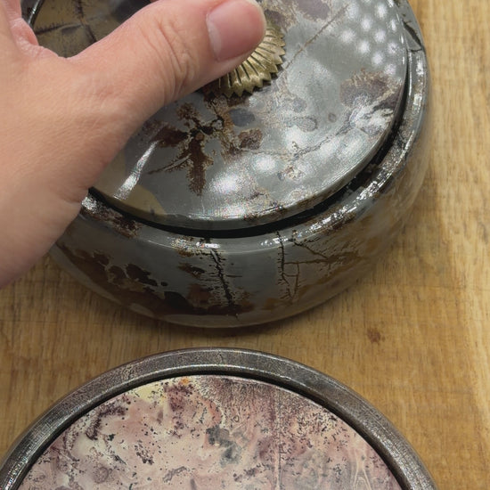 Chaque boite révèle un dessin minéral unique, formé il y a des millions d’années : nuances ocres, rosées ou grises, veines sombres, paysages abstraits… Aucun modèle ne se ressemble.