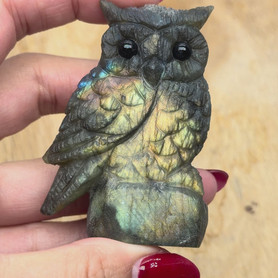 Figurine Hibou en Labradorite AA+ 6.5x4 cm (modèle unique nº4)