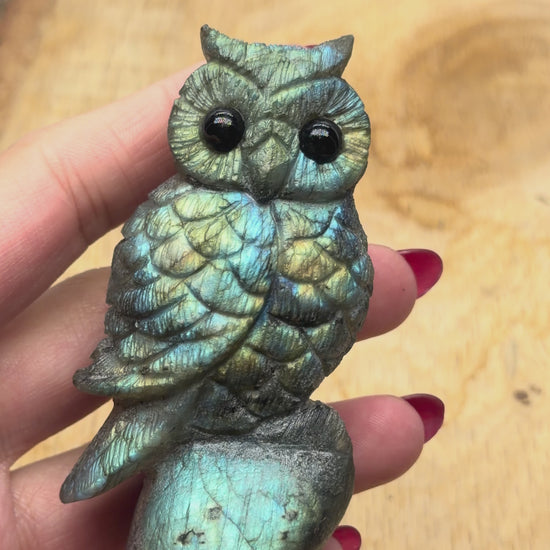 Figurine Hibou en Labradorite AA+ 8x4 cm (modèle unique nº19)