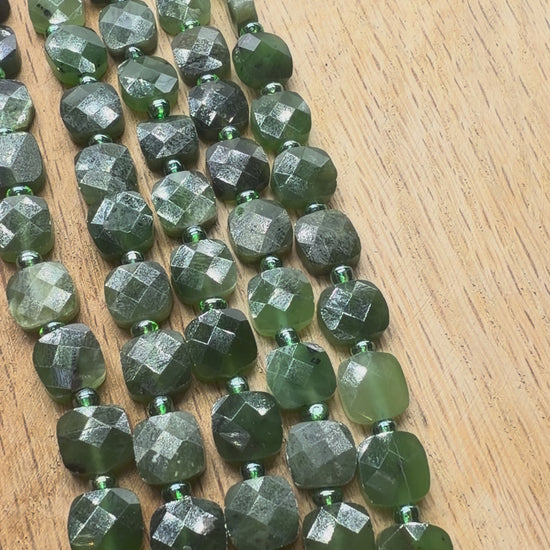 Fil de Jade nephrite carré facetté 8x8 mm