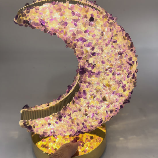 Lampe Lune en Améthyste 21x14 cm – Rechargeable & Tactile