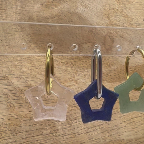 Ces deux petits charms sont entièrement taillés dans de véritables pierres naturelles. Ils sont conçus pour être glissés sur des créoles afin de personnaliser vos boucles d’oreilles selon vos envies.