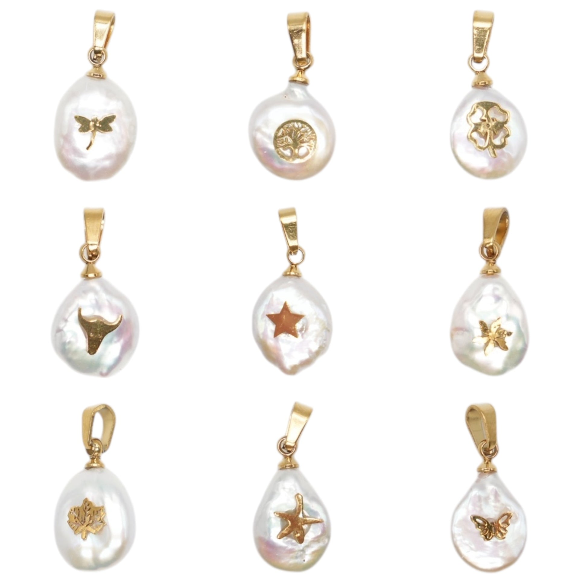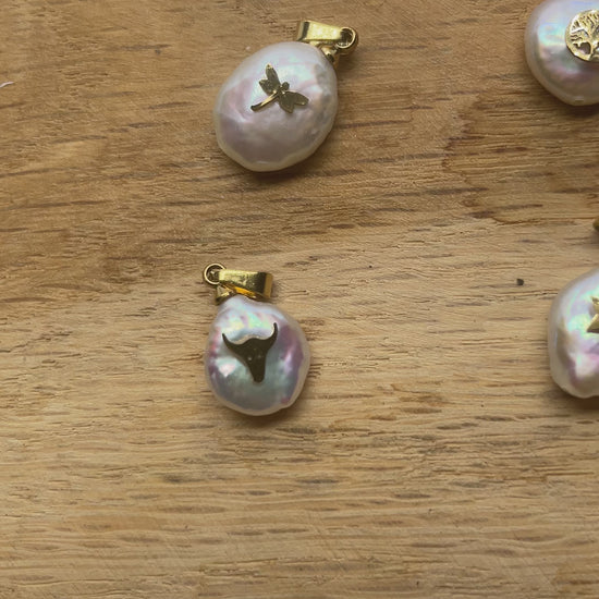 Lot de 5 pendentifs nacre avec motif en acier inoxydable (11 modèles disponible)