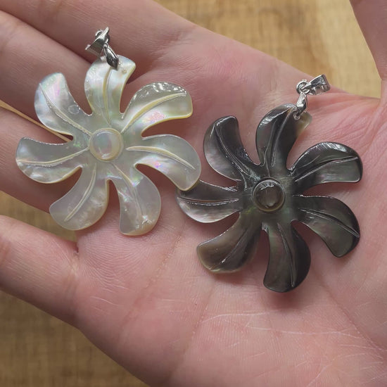 Pendentif fleur forme moulin à vent en nacre