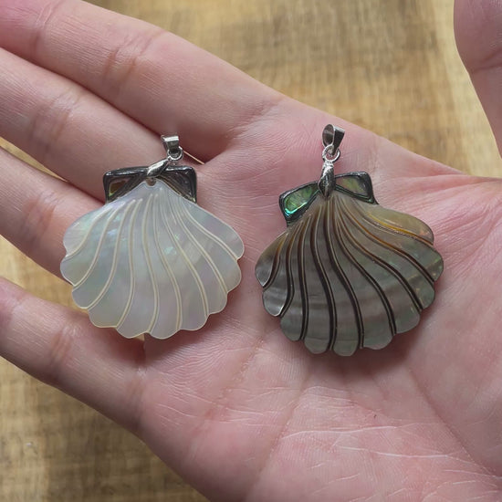 Pendentif forme coquillage en nacre & abalone