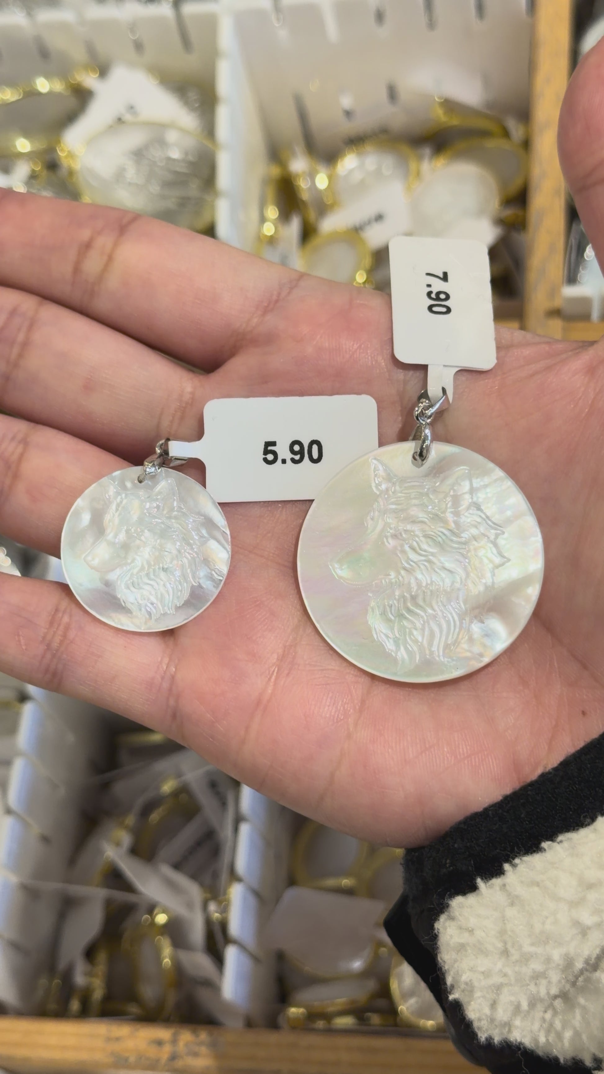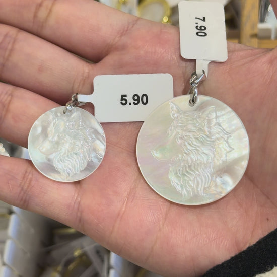 Pendentif Loup sculpté main nacre blanche (2 tailles disponible)