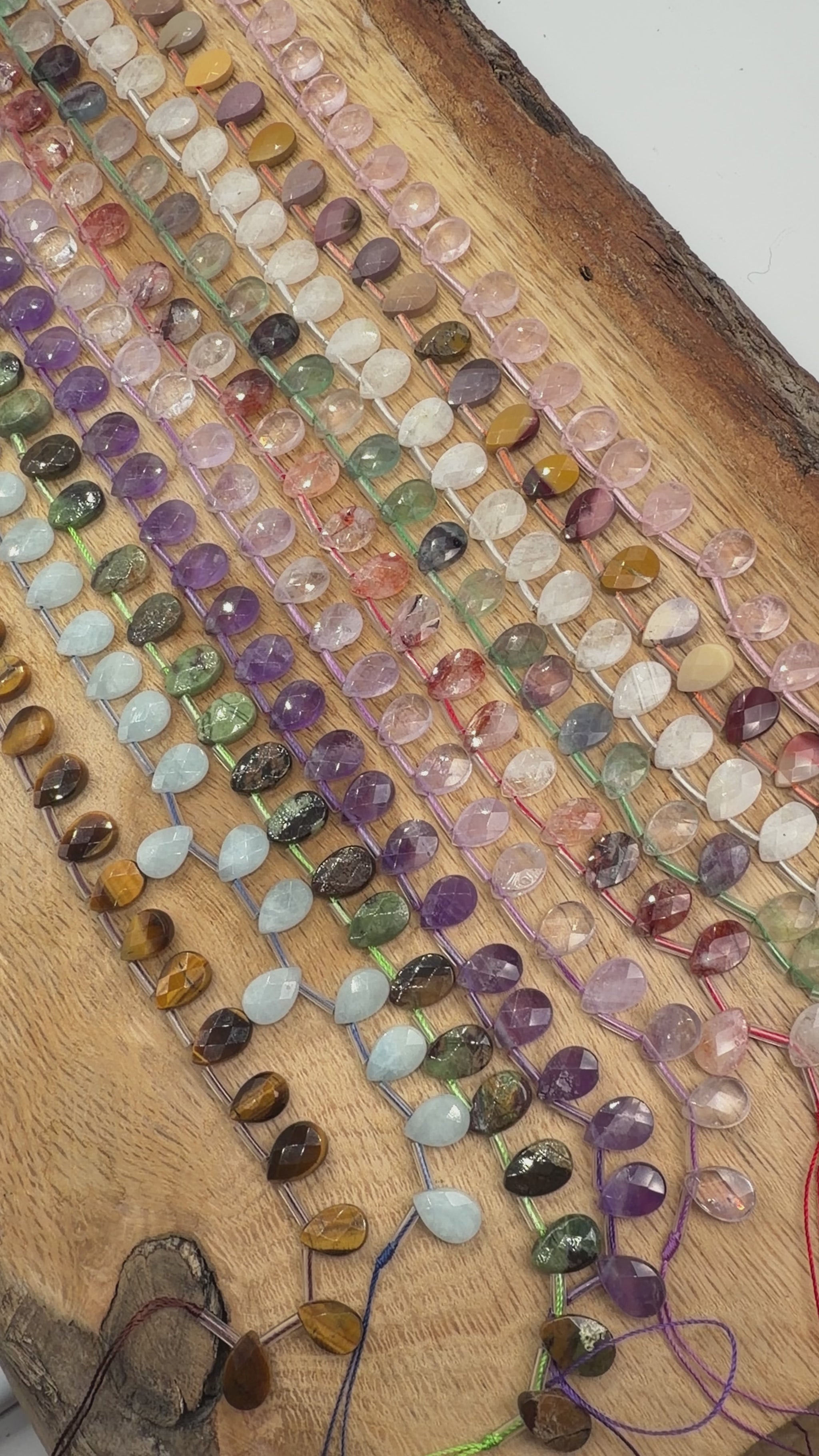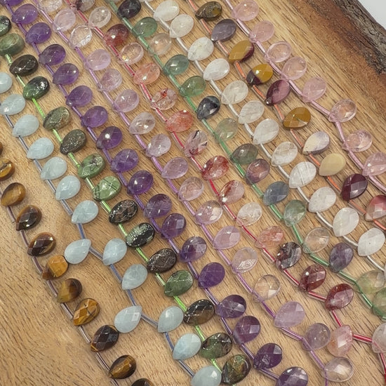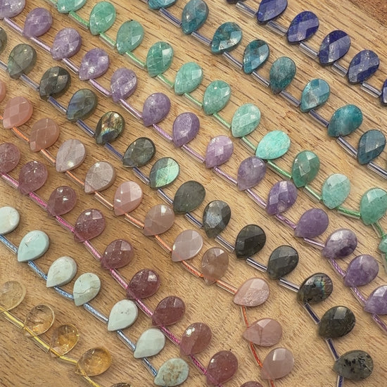 Fil de petits pendentifs goutte facetté plate 8x12 mm (19 pierres disponible)