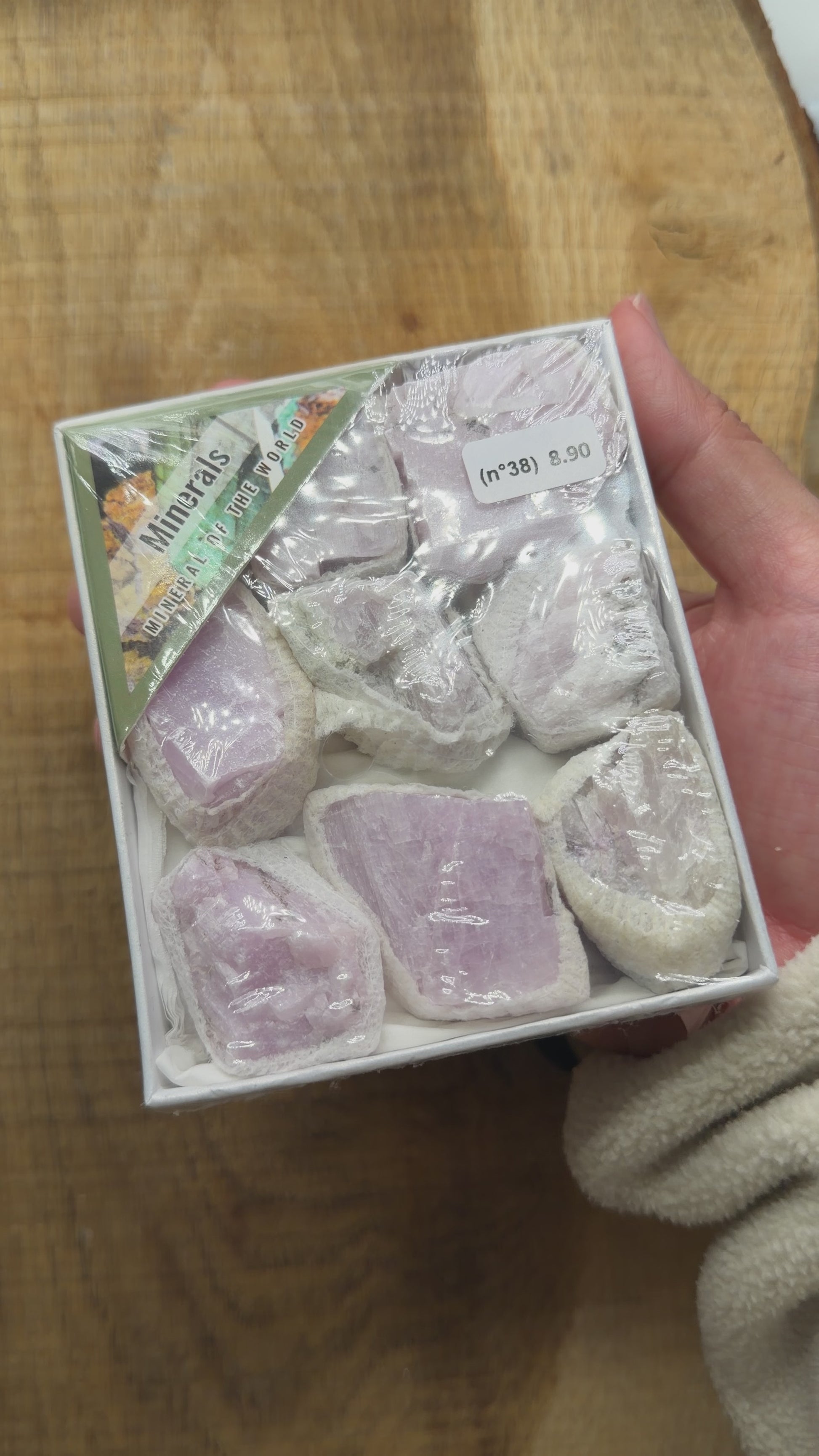 Boîte de mini Kunzite brute 8,5x10x3,5 cm N°38