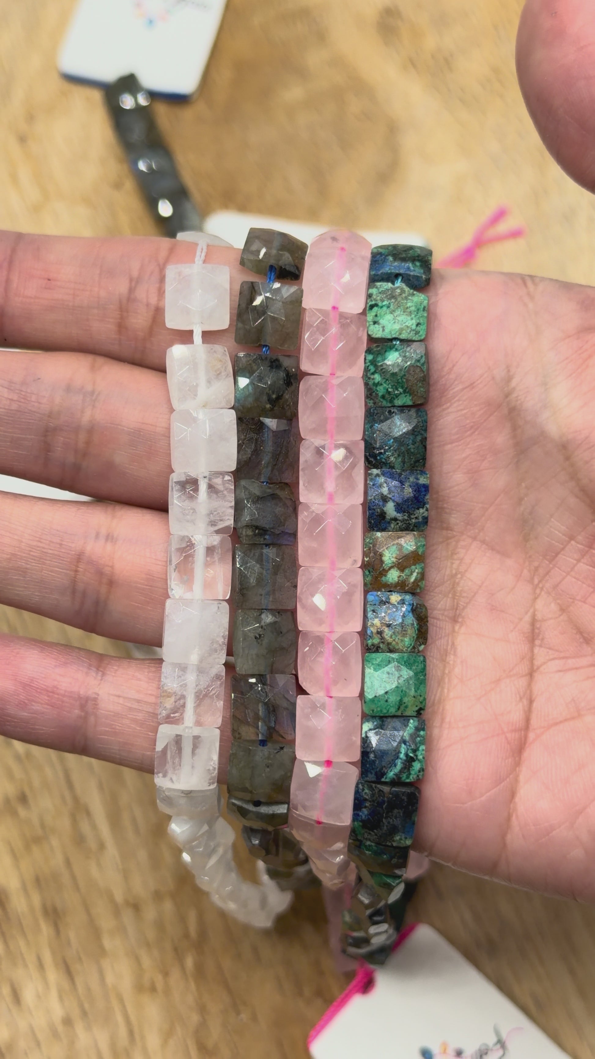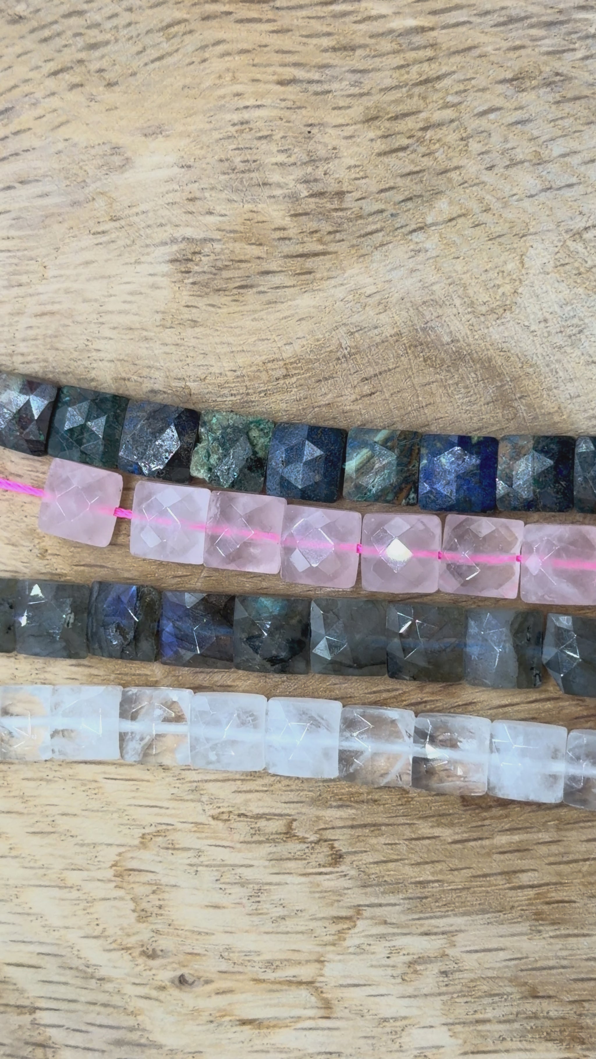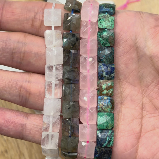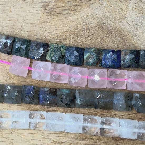 Fil de perle carré facetté plat 8x8 mm (4 pierres disponible)