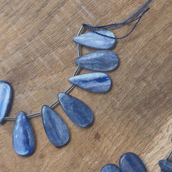 Fil de perle forme de goutte Cyanite bleue 12x26 mm
