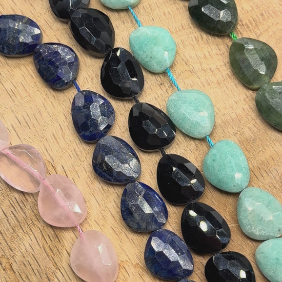 Fil de perle forme poire facetté plat 13x16 mm (5 pierres disponible)