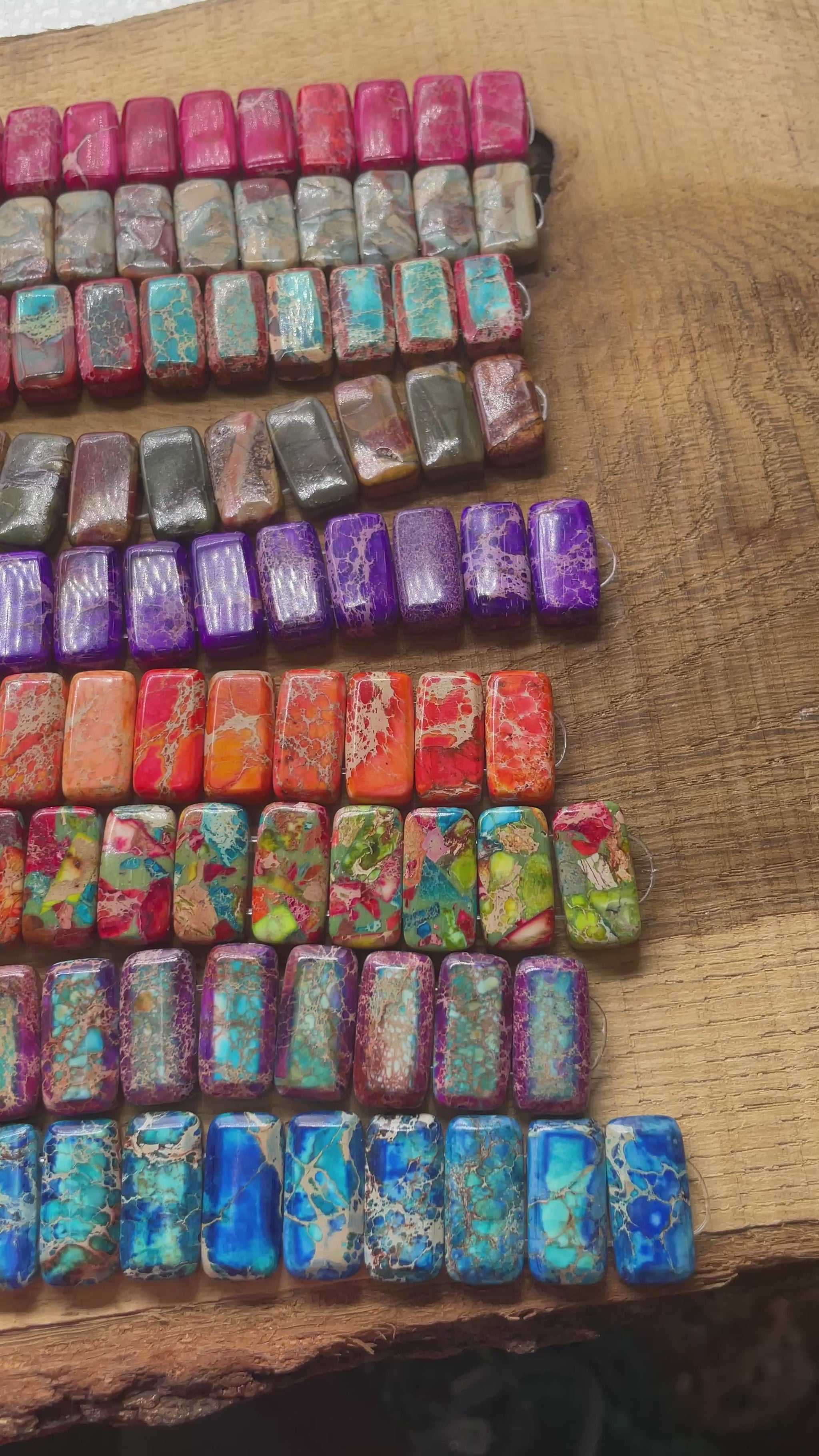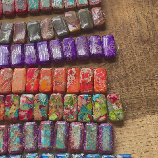 Fil de perle Jaspe imperial chauffée 10x20 mm (percage avec 2 trous)