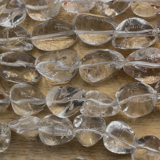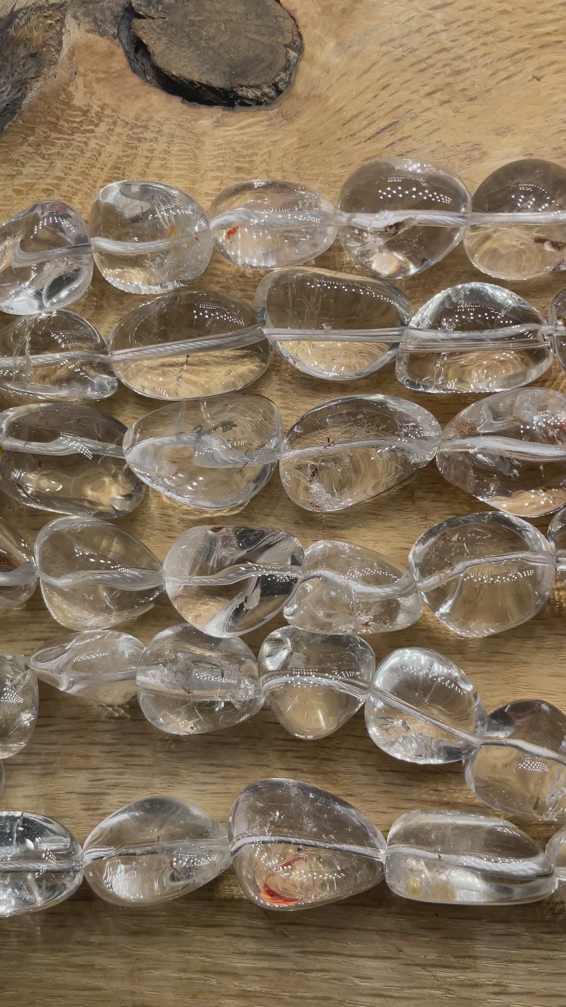 Fil de perles en Cristal de roche avec inclusion 25x15 mm