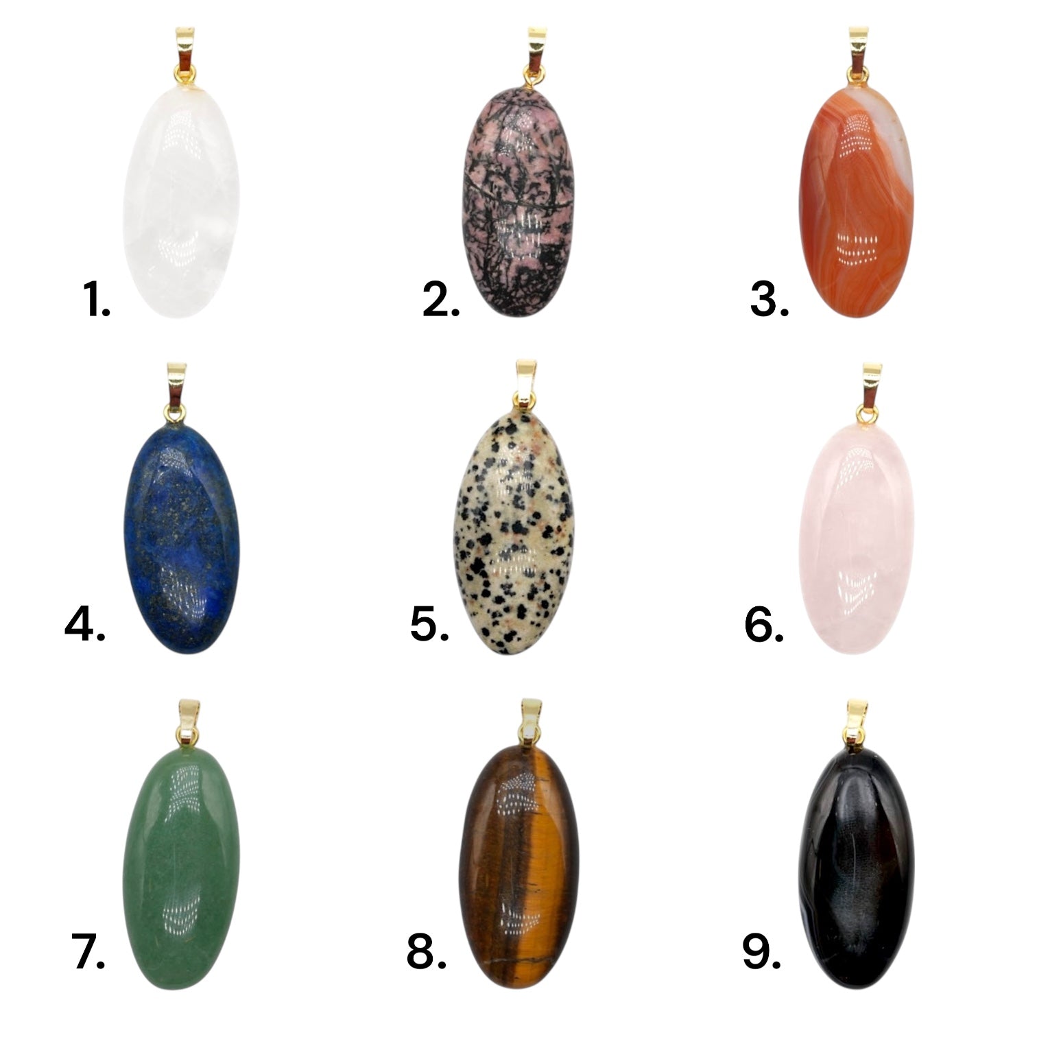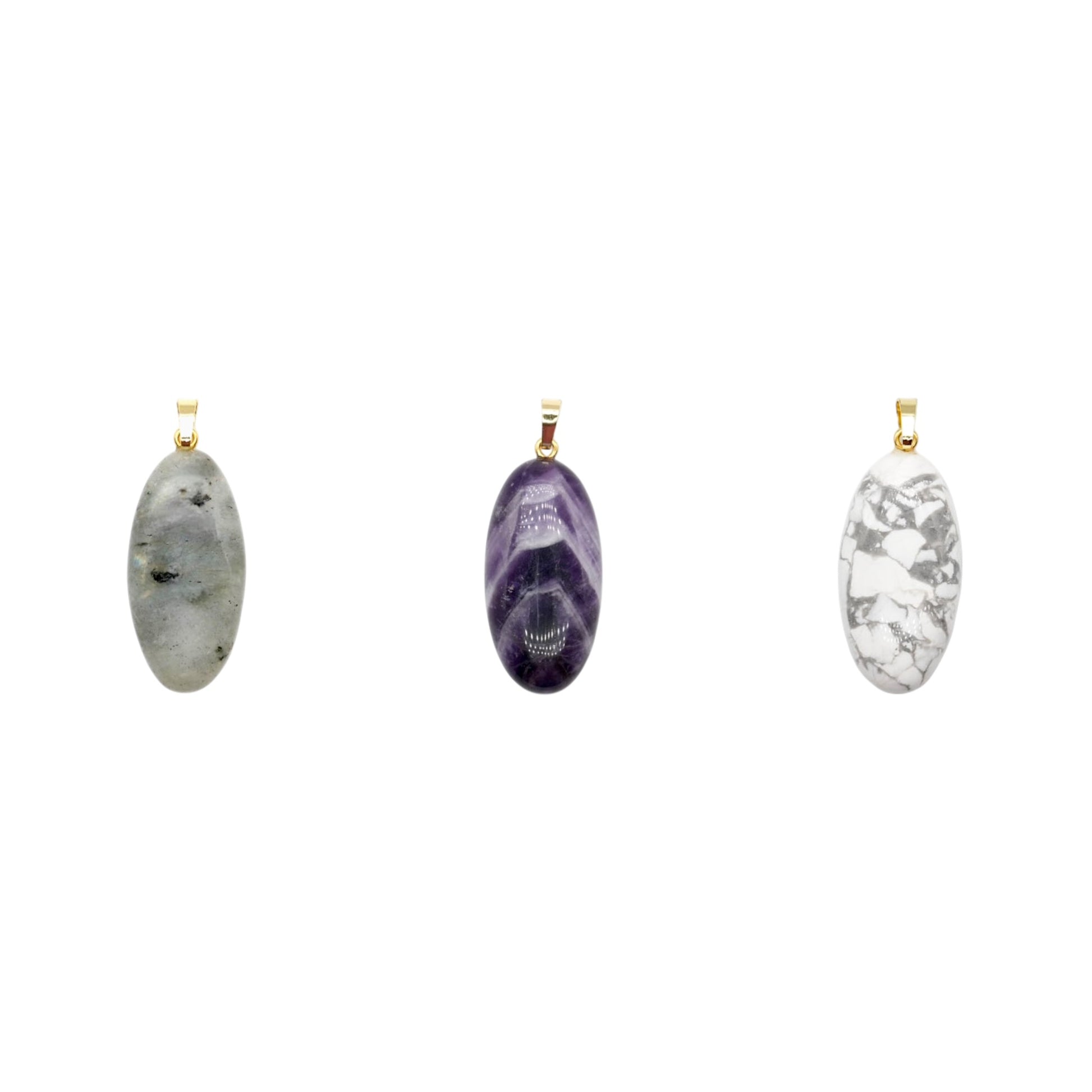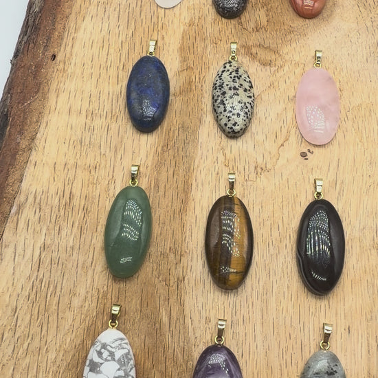 Pendentif ovale 20x40 mm (12 pierres disponible) (bélière doré ou argenté incluse)