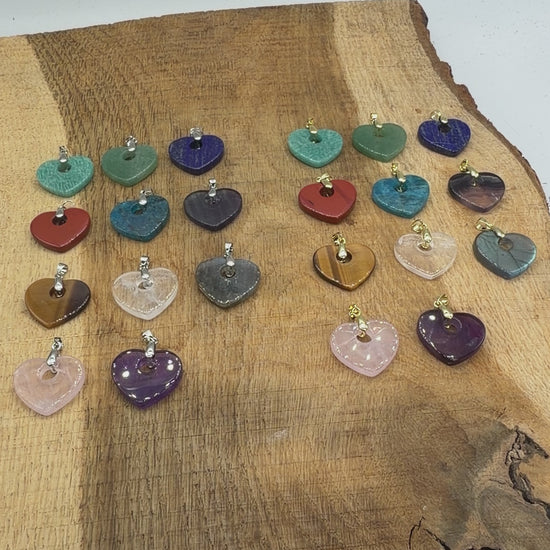 Pendentif Coeur 25 mm — Bélière dorée ou argentée (11 pierres disponible)