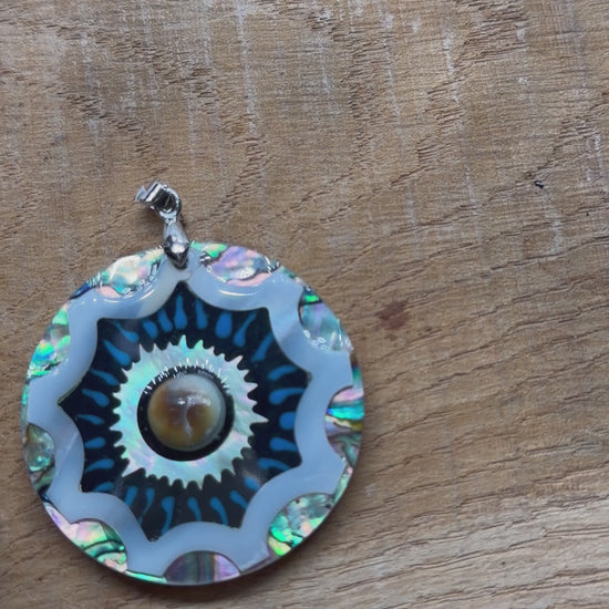 Pendentif ronde en Nacre abalone & oeil de shiva 4 cm (talisman porte-bonheur, protection, la chance et l’ouverture spirituelle)