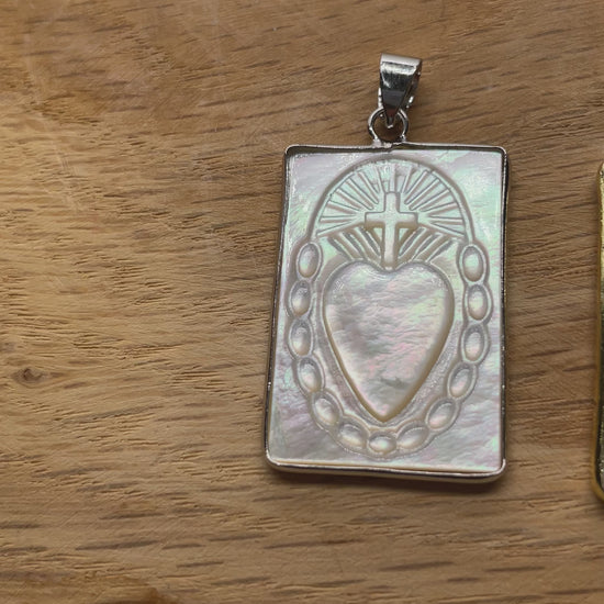 Pendentif Sacré-Cœur de Jésus carré en Nacre (protection spirituelle)