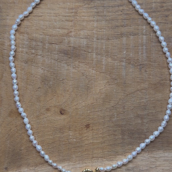 Collier en perles d’eau douce 3.5 mm attache bouée en acier doré numero 6