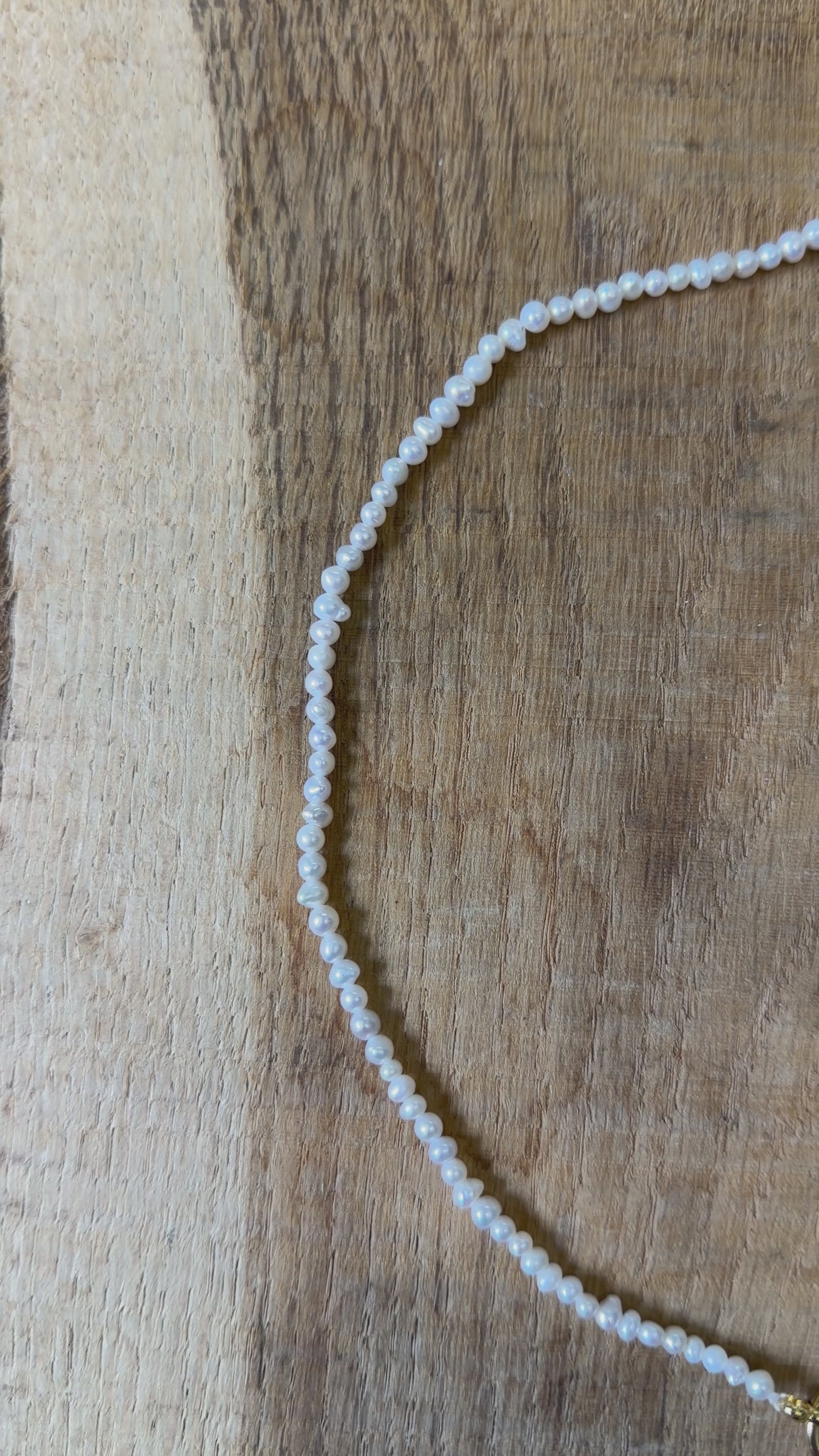 Collier en perles d’eau douce 3.6-4 mm attache bouée en acier doré numero 3
