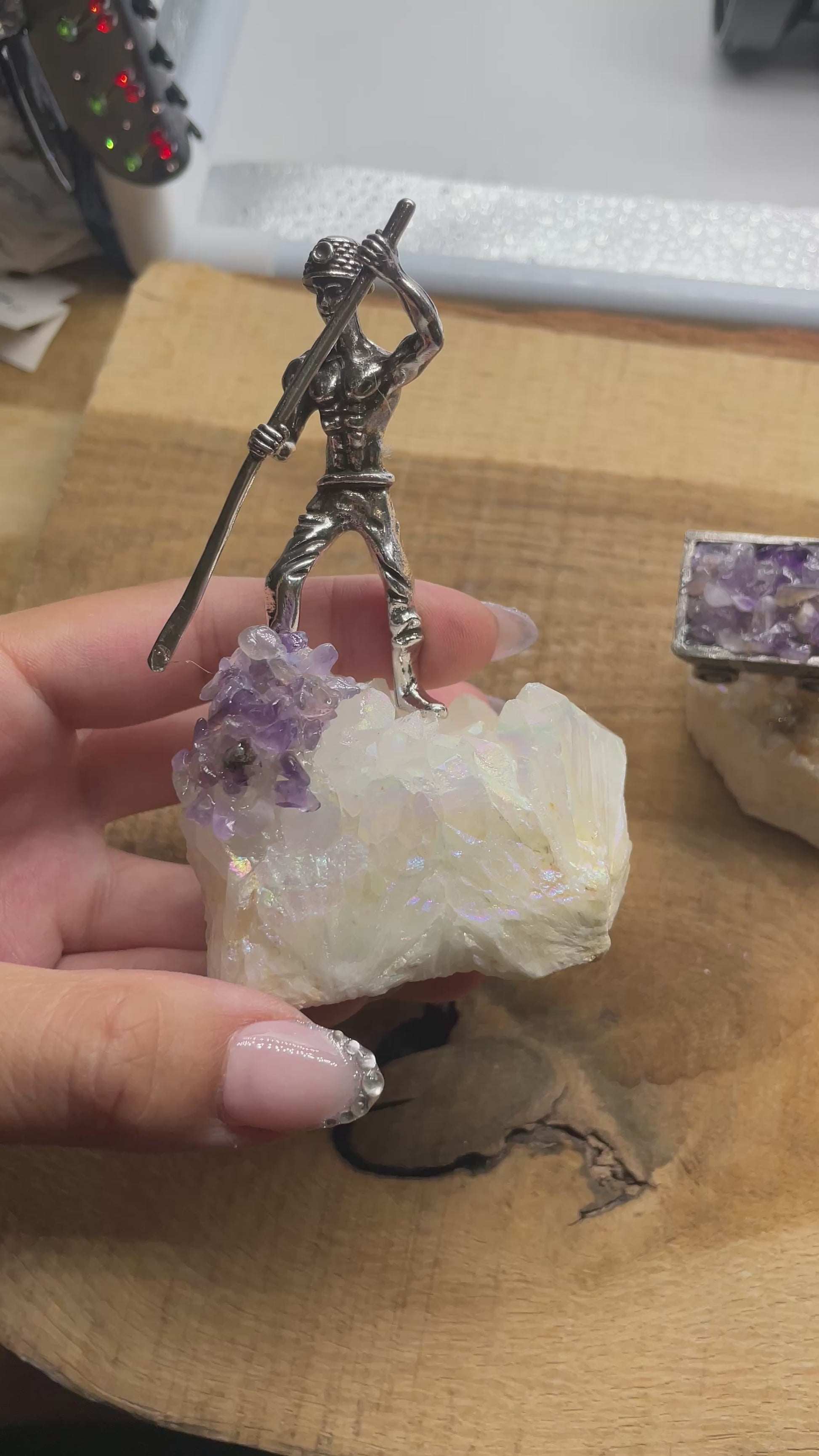 Figurine mineur avec Cristal Aqua Aura & améthyste