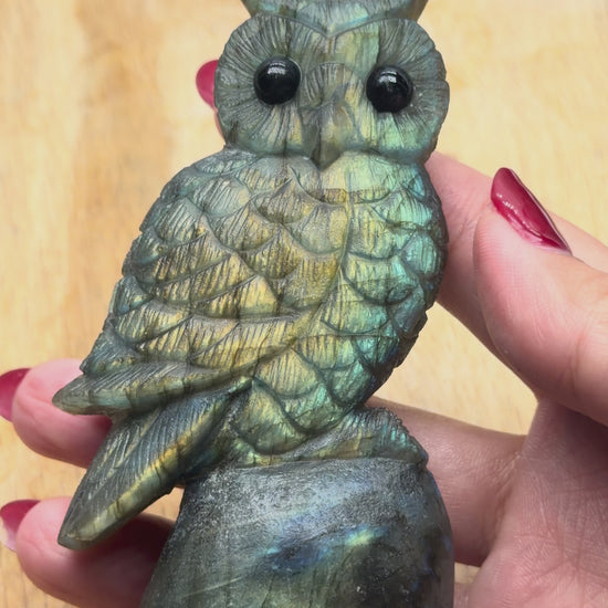 Figurine Hibou en Labradorite AA+ 10x4.5 cm (modèle unique nº15)
