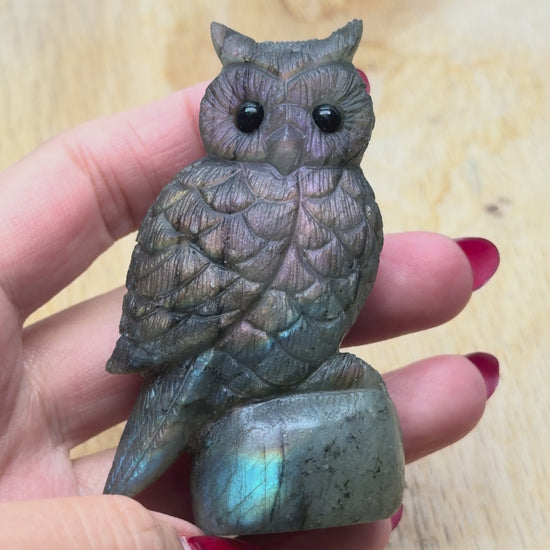 Figurine Hibou en Labradorite bleu rose AA+ 7x4 cm (modèle unique 2)