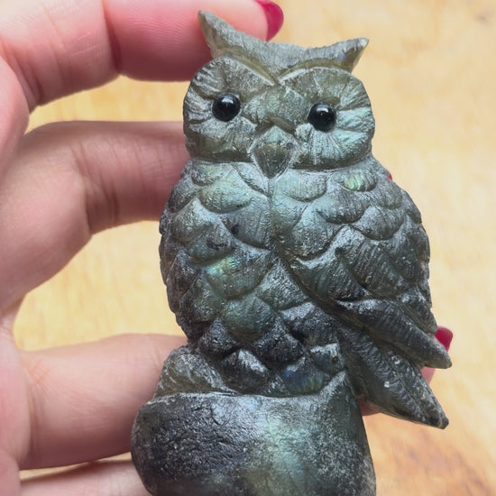 Figurine Hibou en Labradorite AA+ 7x4 cm (modèle unique nº10)