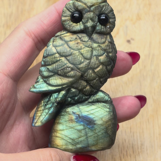 Figurine Hibou en Labradorite AA+ 8,5x5 cm (modèle unique nº18)