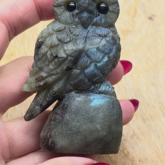 Figurine Hibou en Labradorite AA+ 8x4 cm (modèle unique nº6)