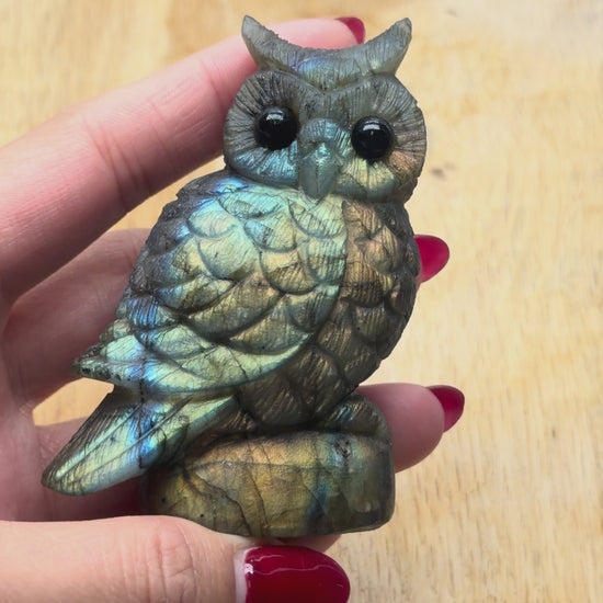 Figurine Hibou en Labradorite AA+ 8x5.5 cm (modèle unique nº17)