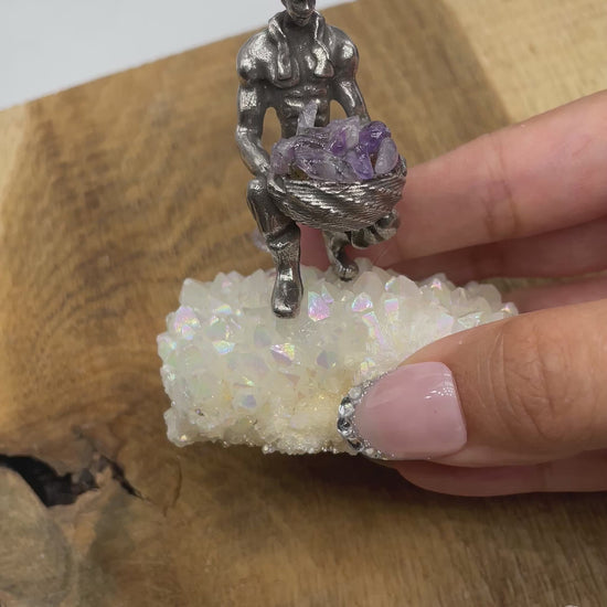 Figurine mineur avec Cristal Aqua Aura & améthyste
