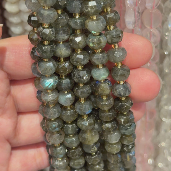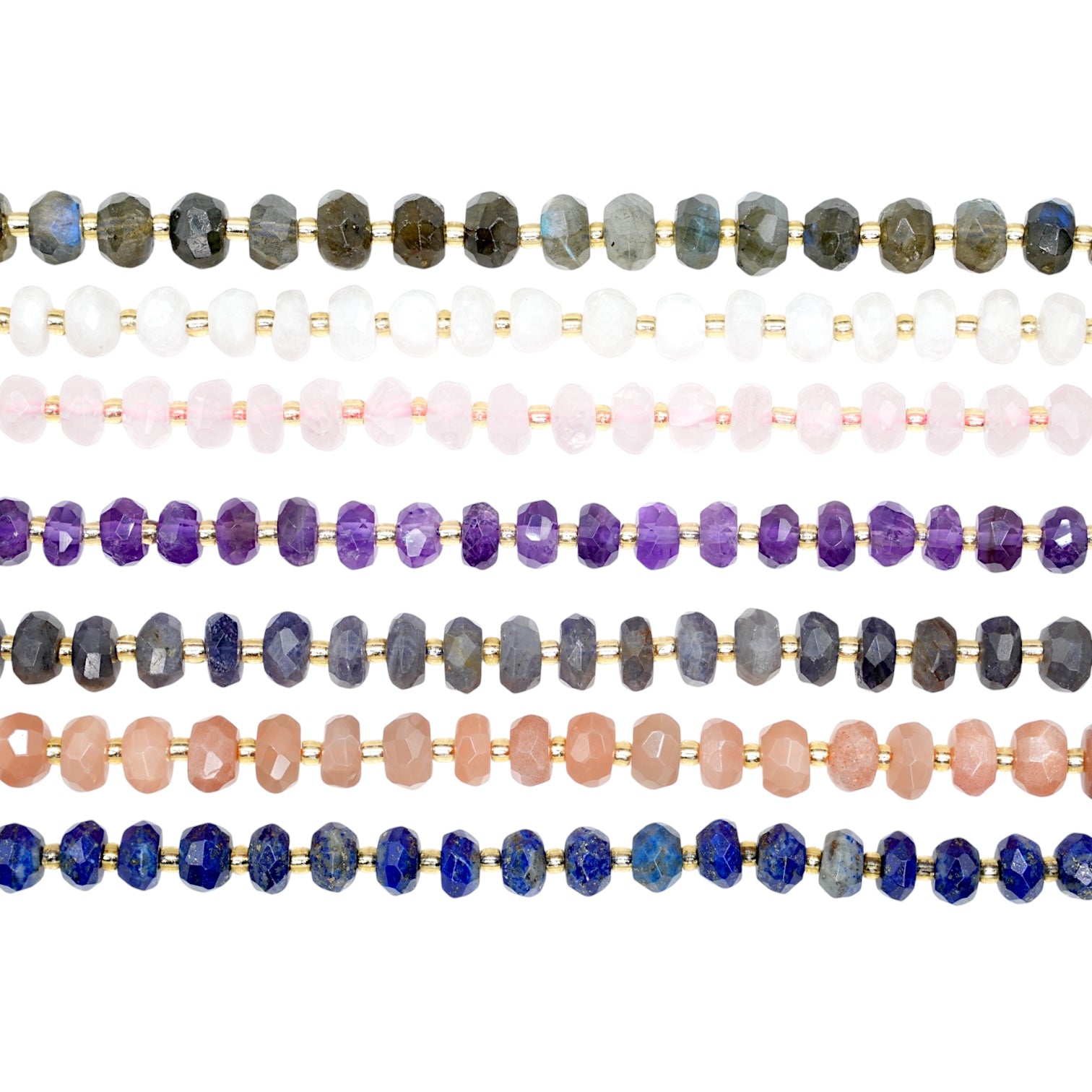 Fil de perle en rondelle facetté avec perles rocailles 5x8 mm (7 pierres disponible)