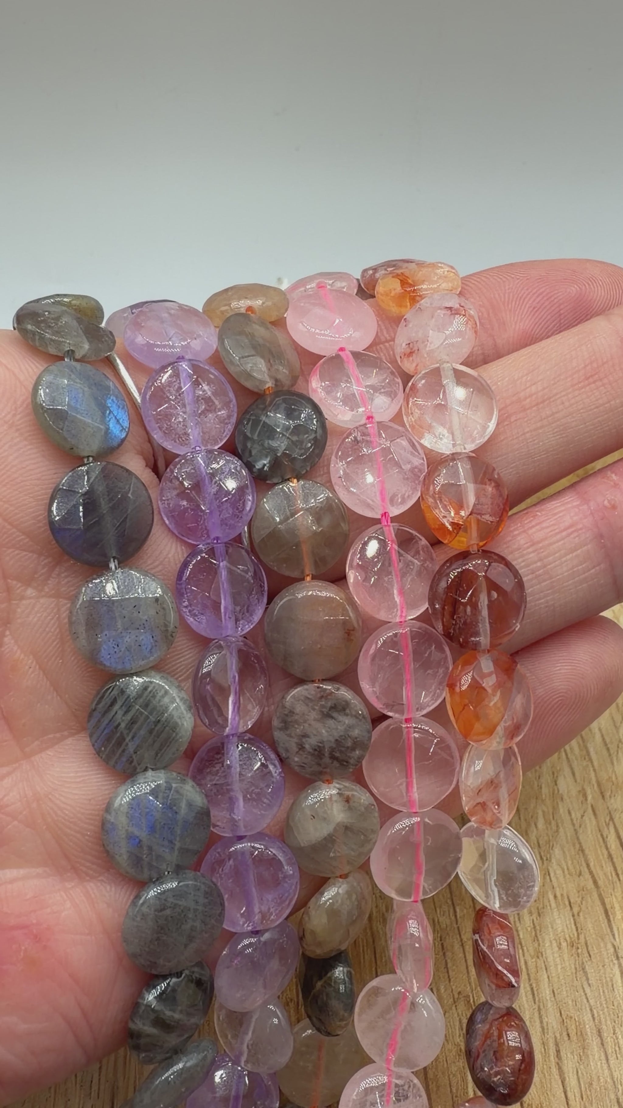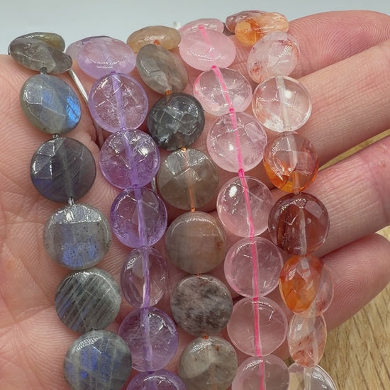 Fil de perle facetté rond arrondie 10 mm en pierre naturelle (5 pierres disponible)