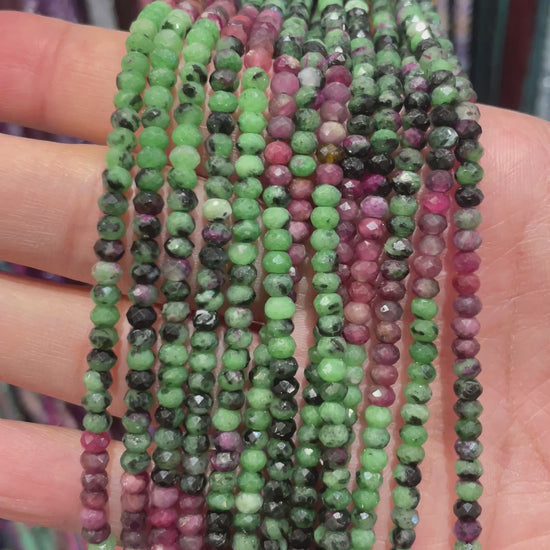 Fil de perles rondelles facettées Rubis sur Zoisite verte 3x4 mm