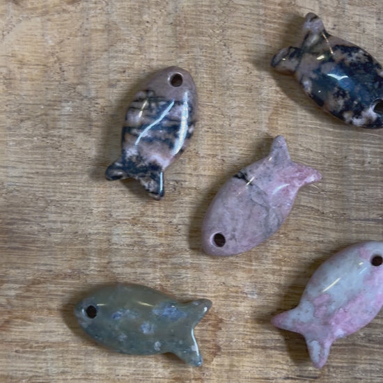 Lot de 5 poissons en pierre naturelle — trou 2 mm