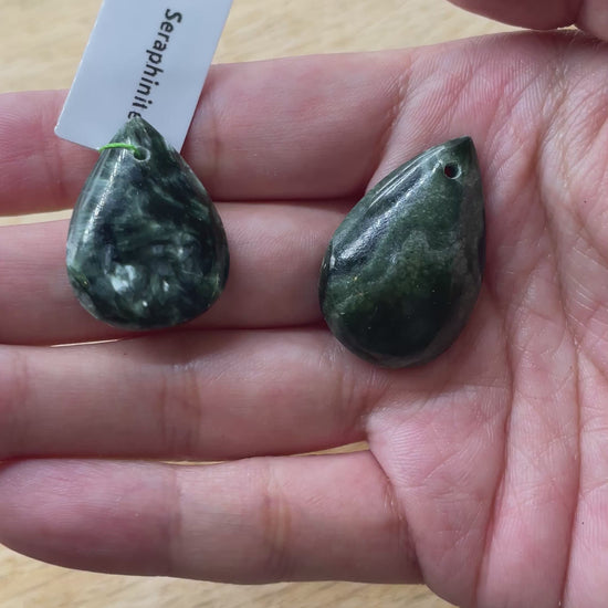 Pendentif Seraphinite forme goutte percé devant (3 tailles disponible)