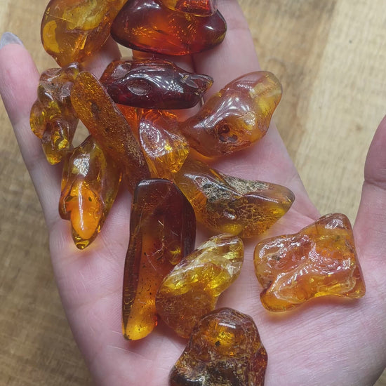 Les matières naturelles comme l’ambre peuvent présenter des légers défauts & des trous, chaque pierre est unique.